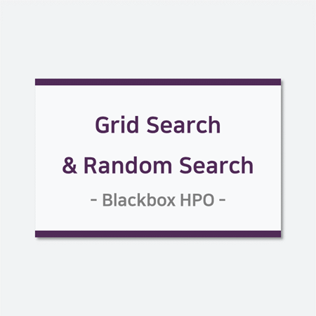 HPO에 적용되는 기본적인 model-free blackbox optimization 방법론은 Grid search와 Random search가 손꼽힙니다. 이 방법들은 모델이 존재하지 않기 때문에 초기에 설정된 파라미터(Grid search의 경우 검색 구간, random search의 경우 random seed)에 따라 해당 경우에 발생한 결과값을 중 가장 좋은 값을 최적 값으로 결정하게 됩니다.